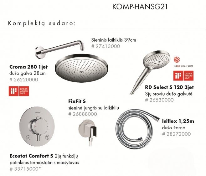 Hansgrohe Ecostat Termostata Dušas Komplekts 6in1 Hroms (KOMP-HANSG21)